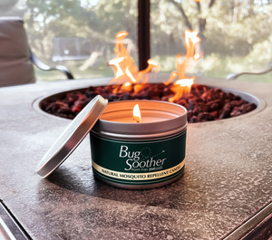Try our repelling Bug Soother candle paired with an 8 oz. and 1 oz. Bug Soother Spray Pack! Our Bug Soother Mosquito Repellent Candle features lemongrass oil with a touch of vanilla for the well-loved scent of Bug Soother in candle form. Perfect along with our traditional spray to keep mosquitos away so your family can enjoy a night on the patio or ball game without annoying bugs.